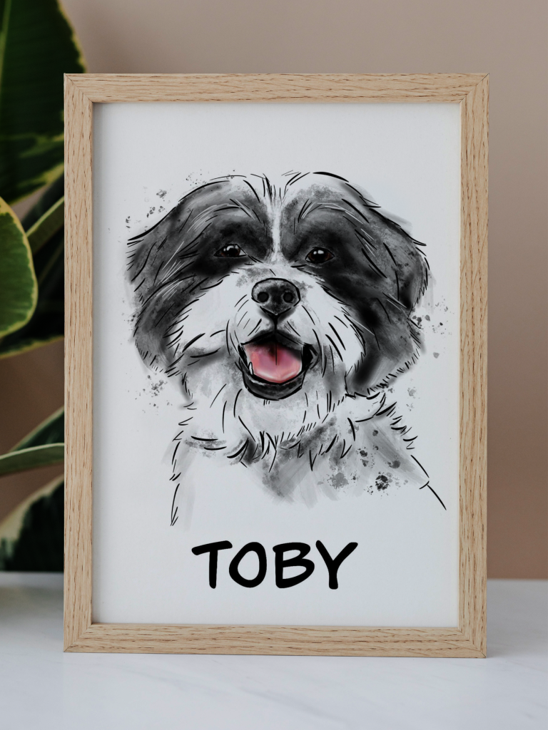 Laat het eigenzinnige karakter van jouw lieve huisdier vangen in een handgemaakt en energiek portret.