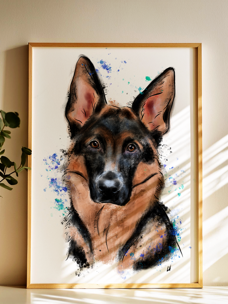 Laat het eigenzinnige karakter van jouw lieve huisdier vangen in een handgemaakt en energiek portret.